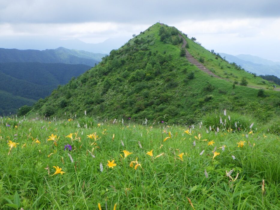 高原レタスを食べたいというので思いついたのが飯盛山、長野県南佐久郡南牧村にあり、清里高原の東にそびえている。お茶碗に盛られたご飯のようで山頂付近には高い樹木のない穏やかな山容です。往復2時間程度なのでお年寄りにはお勧めのコース。野辺山のレタス購入までの途中にあるので、丁度良い。久しぶりの飯盛山(1643m)獅子岩駐車場より往復です。思いのほか野草が沢山咲いており、大盛山のニッコウキスゲの群落は見事でした。