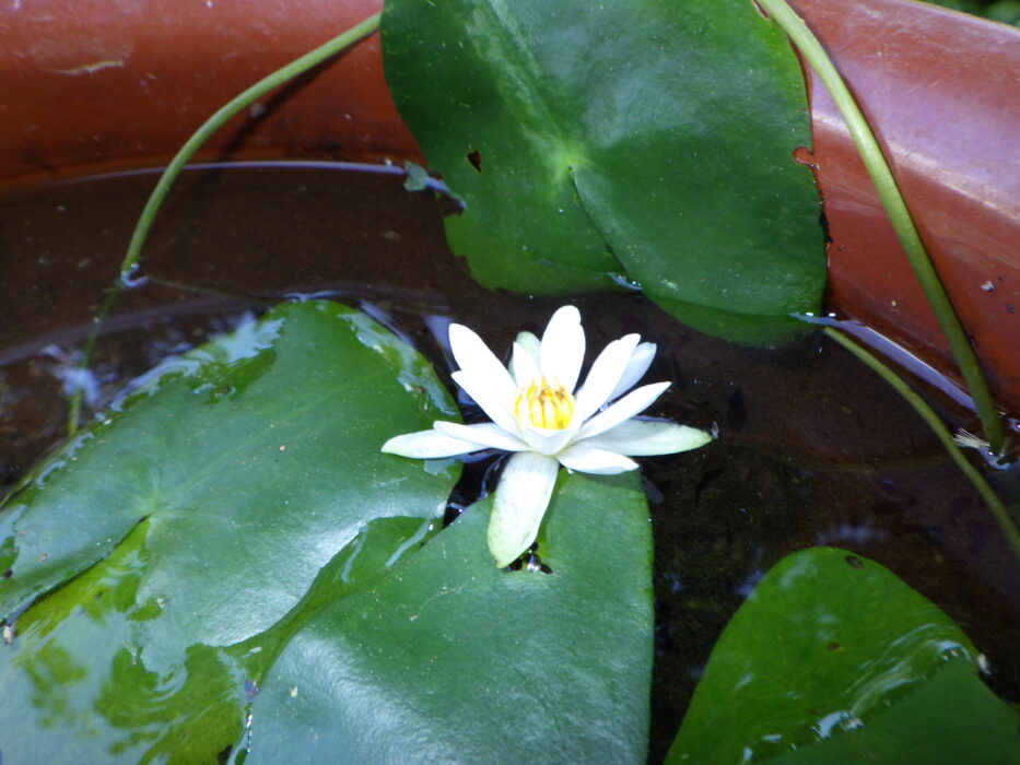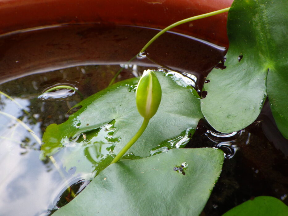 暑さ衰えぬ9日、ヒツジグサがまた開いた。8月にも池のスイレンがさくなど植物も変調。