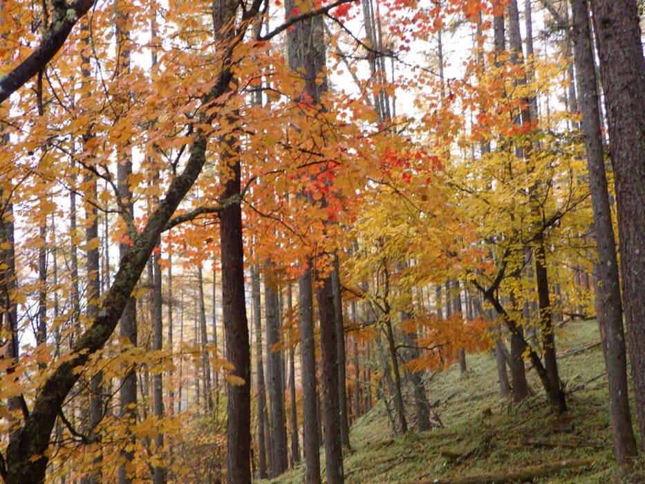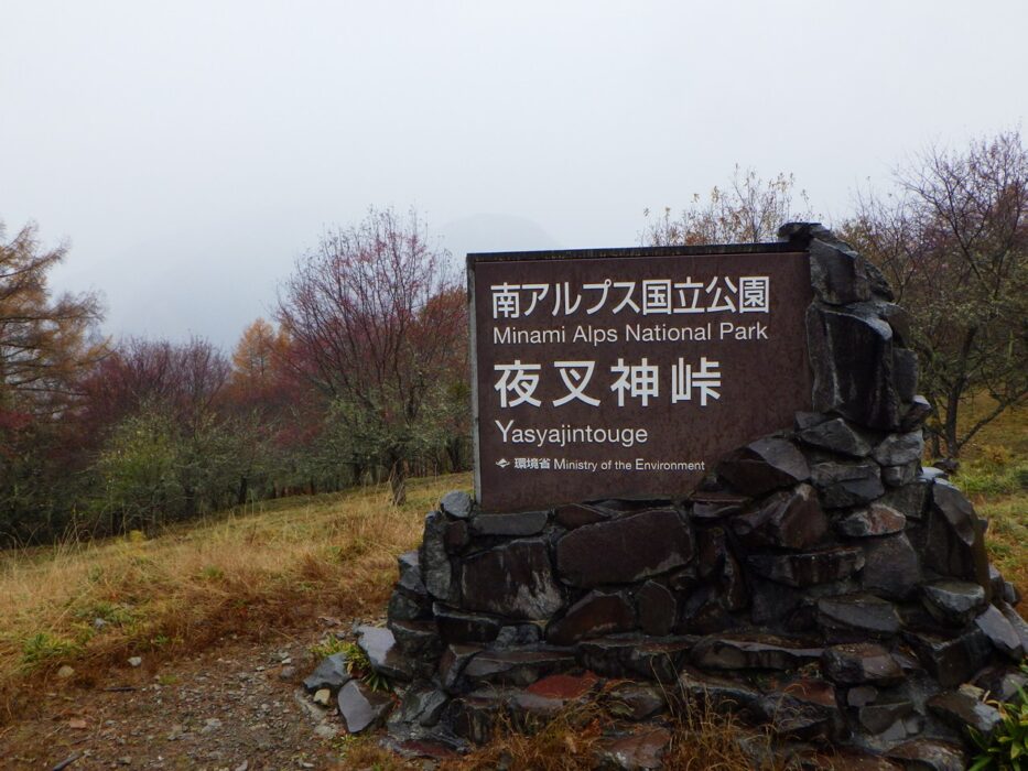 雨を覚悟で夜叉神峠に出かける。裾野は雨ふりなのに富士から芦安の登山口まで幸運にも雨ナシ。夜叉神峠は南アルプスにある標高1770m、南アルプスの北岳などを望むことができる展望台。南アルプス街道は谷が最高の黄葉と紅葉で美しい。小雨が降る中、雨具を着て歩いた。