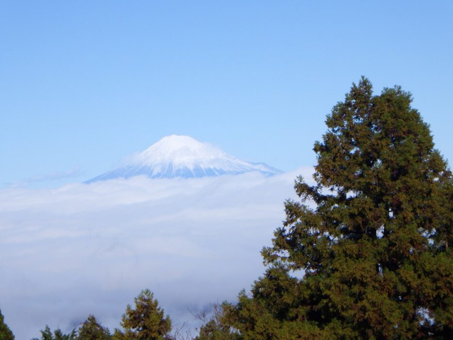 午前中雨という予報、午後は晴れになるというので 静岡市と焼津市の境にある満観峰に出かける。標高460mで富士山と駿河湾の絶景が見られるので、気軽にハイキングができます。東海道線 用宗駅から往復。頂上につくと富士が雲から顔を出しはじめたところでなんと幸せ気分。